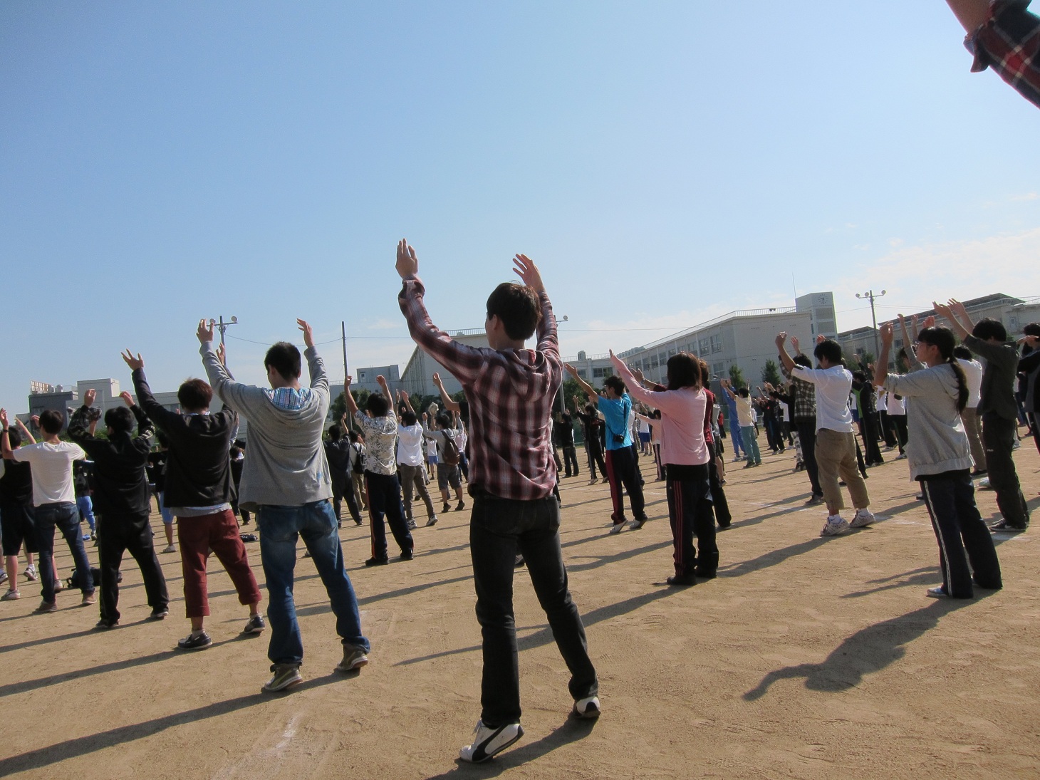 そして、学生全員(900人ぐらい)で一斉に、ラジオ体操第一を行いました